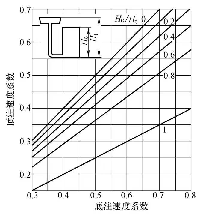 1)根據(jù)進(jìn)流位置和澆注系統(tǒng)結(jié)構(gòu)的不同,速度因數(shù)也不同,具體選擇方式參見(jiàn)圖-5。